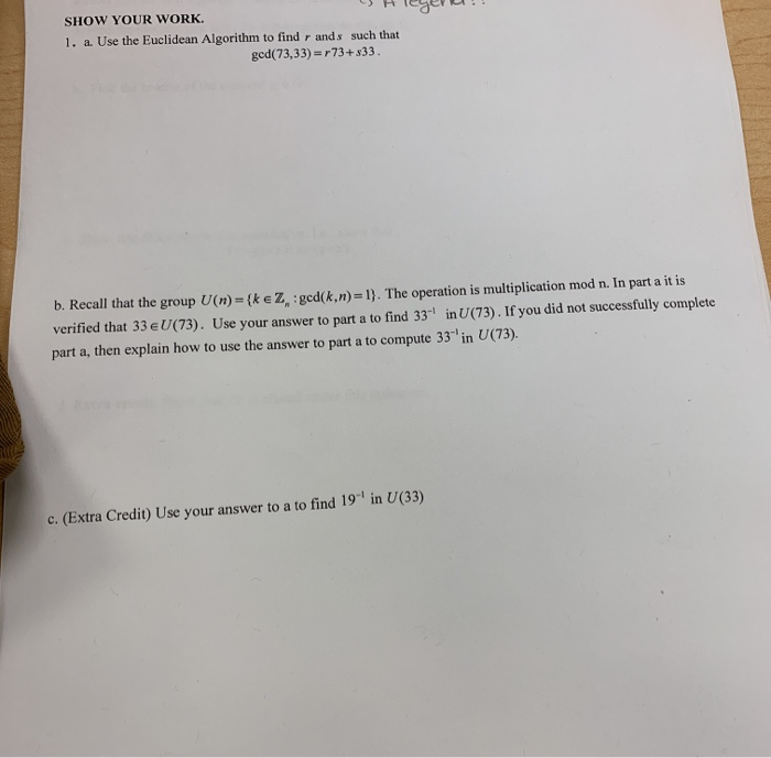 Solved Show Your Work 1 A Use The Euclidean Algorithm Chegg Com